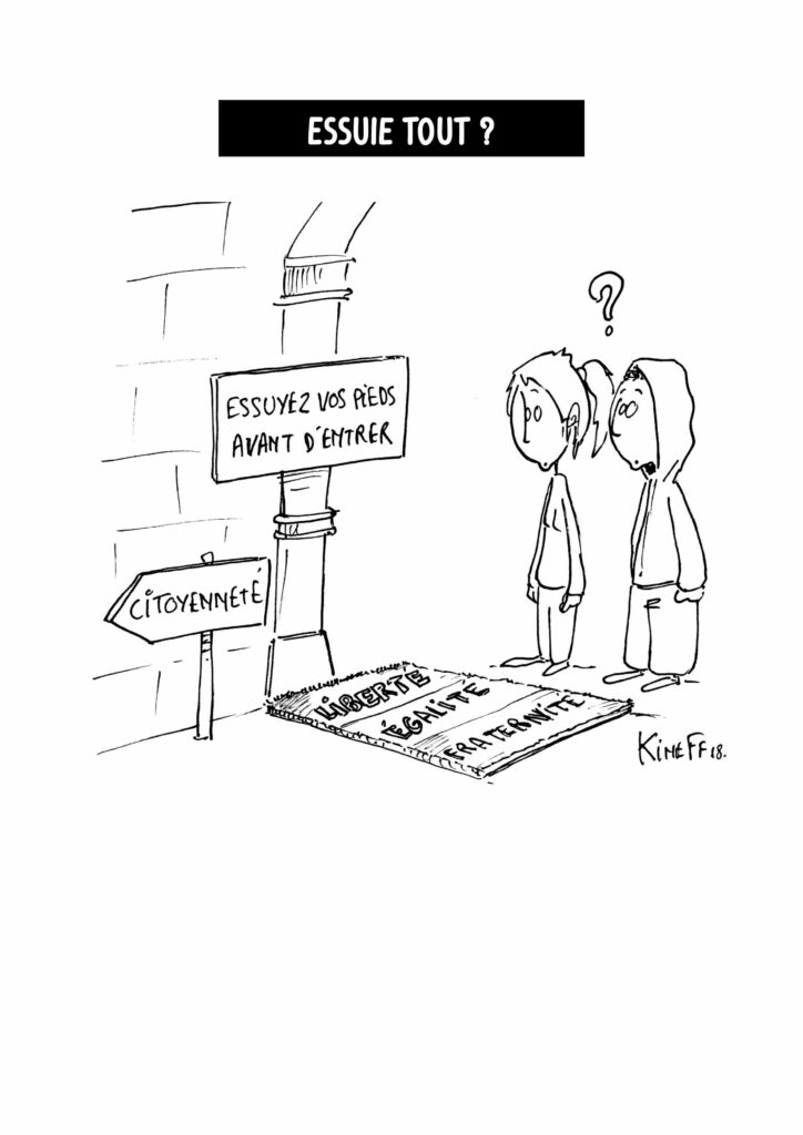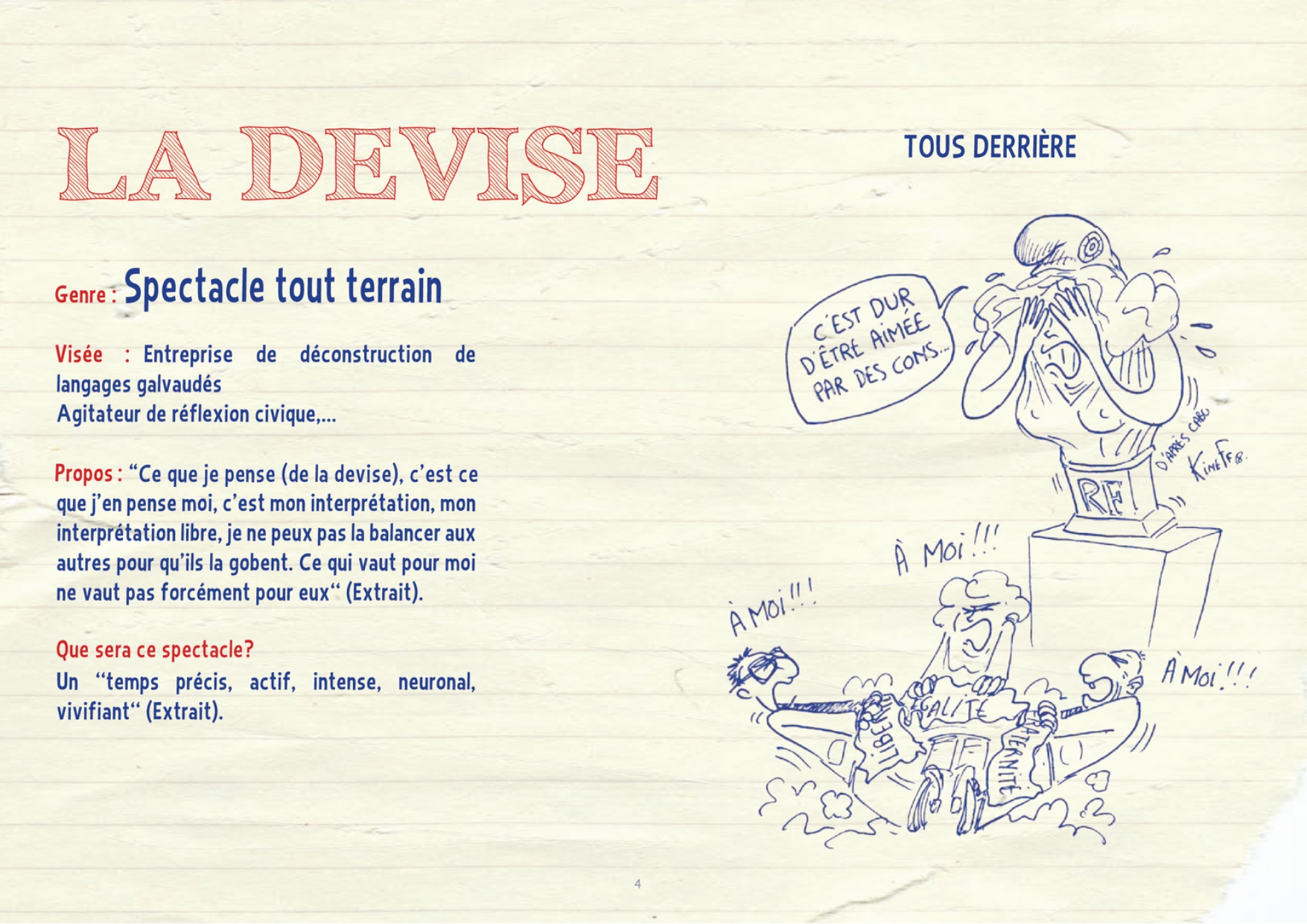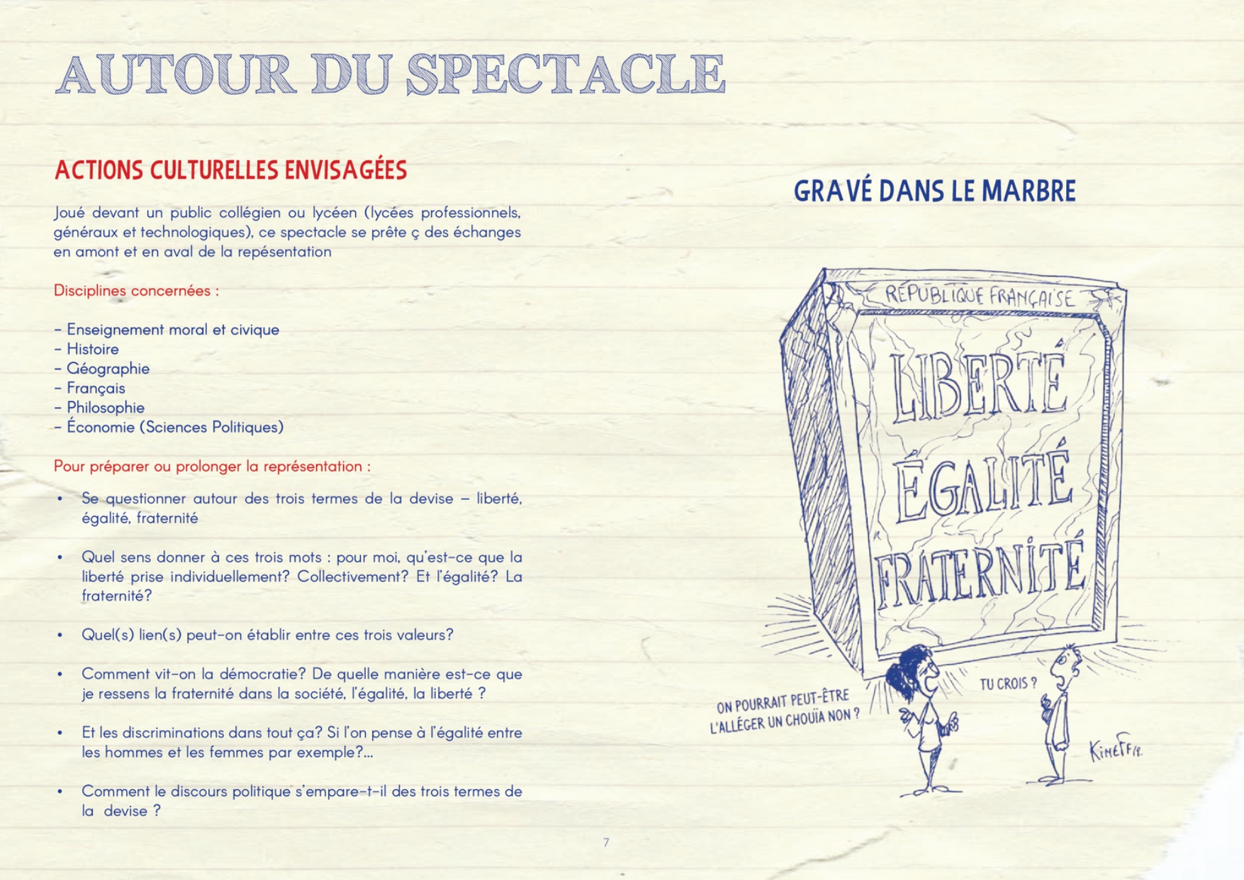 François Begaudeau, auteur de « Entre les murs », palme d’or au festival de Cannes en 2008, nous entraîne dans une réflexion jubilatoire sur les trois mots de la devise. Avec humour, il utilise un langage quotidien pour pouvoir intéresser un public jeune et toucher « ceux qui se mettent dans le fond ».